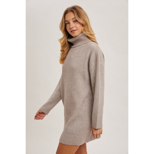 BLUIVY - TURTLENECK RIBBED SWEATER DRESS | MUSHROOM