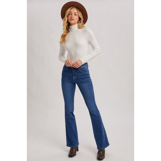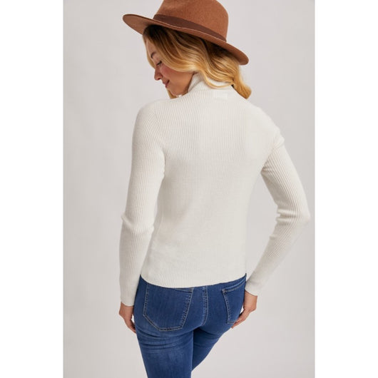 BLUIVY - MOCK NECK RIBBED KNIT TOP | IVORY