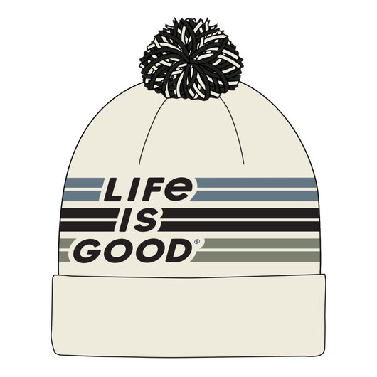 LIFE IS GOOD - UNISEX STRIPE LIG CHILL BEANIE | Birch White